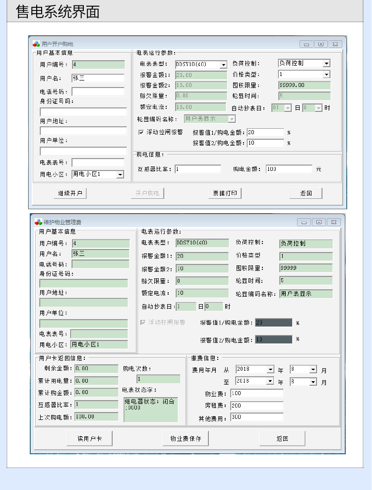 (1)預付費電能表歷經多年發展,由開始的只能收取電費,發展到可以代收物業費和房租費的功能,后續系統升級為除控制用戶用電外,還可控制用戶的物業費或房租費(物業費或房租費到期電表自行斷電,補交物業費或房租費后,預付費電表方可來電),本章通過圖片形式講解用戶關于預付費電度表的功能、操作系統、接線方式等問題。