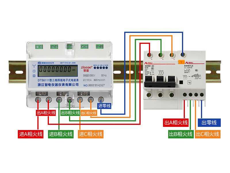 三相四線制,在低壓配電網中,輸電線路一般采用三相四線制,其中三條線路分別代表A,B,C三相,另一條是中性線N或PEN電源側的中性點接地,則中性線也稱為零線(老式叫法,應逐漸避免,改稱PEN,如果不接地,則從嚴格意義上來說,中性線不能稱為零線)。在進入用戶的單相輸電線路中,有兩條線,一條我們稱為相線L,另一條我們稱為中線N,中線正常情況下要通過電流以構成單相線路中電流的回路。而三相系統中,三相平衡時,中性線(零線)是無電流的,故稱三相四線制;在380V低壓配電網中為了從380V線間電壓中獲得220V相間電壓而設N線,有的場合也可以用來進行零序電流檢測,以便進行三相供電平衡的監控。三相導軌式電表的接線方式有區別老式背掛式電表,具體接線方式如下: